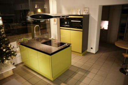 Musterküche CUBE-CP Manhattan Pistazie Hochglanzlack mit Einbaugeräten von Miele